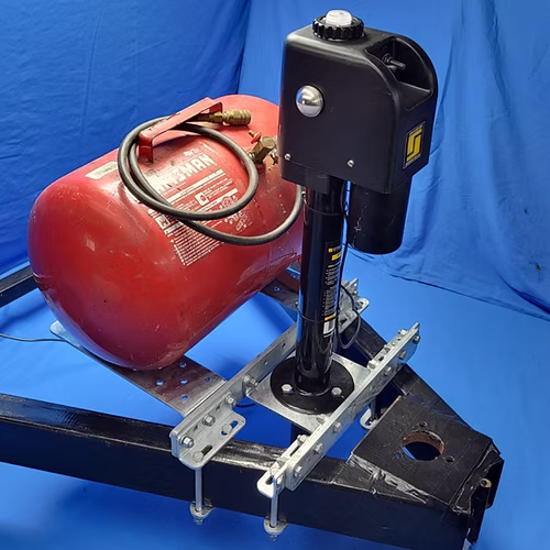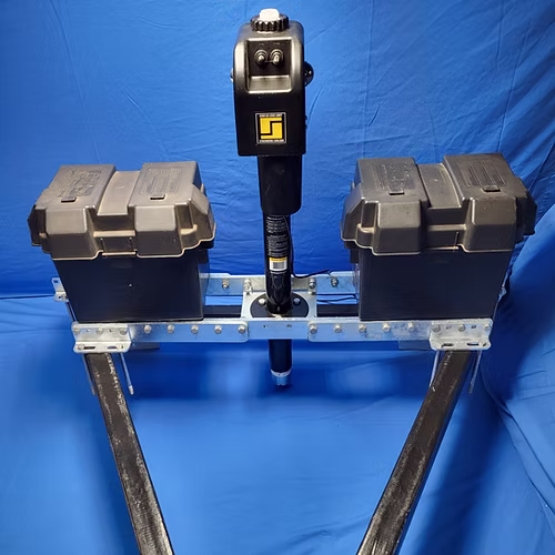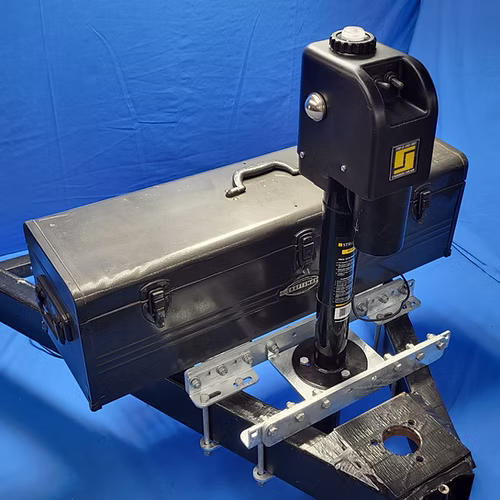 โ–ถ๏ธŽย OnTop Maxi,ย $279, includes (1) 16″ and (1) 20″ mounting bars, adds (4) 16″ extension bars, and moves the jack back 38ย inches, as far as is possible for most trailers. The Maxi can mount twoย batteries, one on each end.