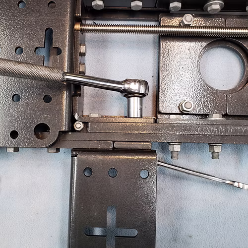 The stainless steel lead screw that moves the tongueย back and forth has a nut affixed to one end that fits the custom crank or a standard socket or wrench. The lead screw can be installed in frontย orย in back of the jack, with the nut on the leftย orย right side, four possible positions, and can be re-positioned without de-installing the Side-to-Side or jack.