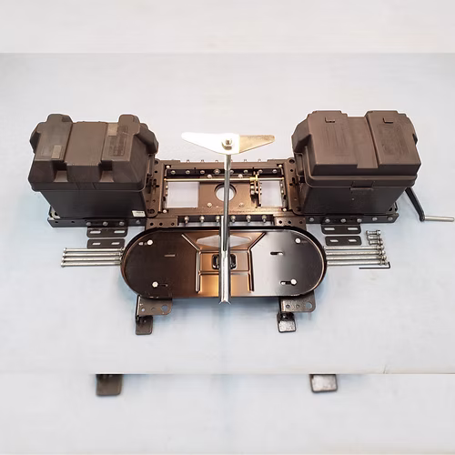 โ–ถ๏ธŽ $499 –ย Side-to-Side Maxi includes (2) 24″ mounting bars,ย (4) 16″ extension bars, (4) 5″ X 9″ X 3/16″ End Plates, andย moves the jack backย fromย 8 to 36ย inches, as far as is possible for most trailers. The Maxi can mount (2) batteries, one on each end.